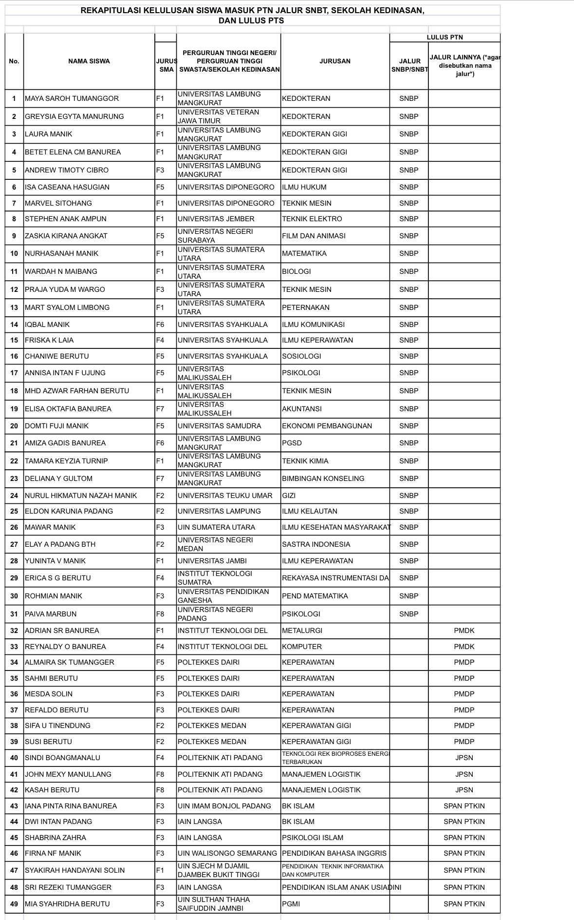Berikut daftar nama siswa yang berhasil diterima di berbagai PTN dan Fakultas Kedokteran.
